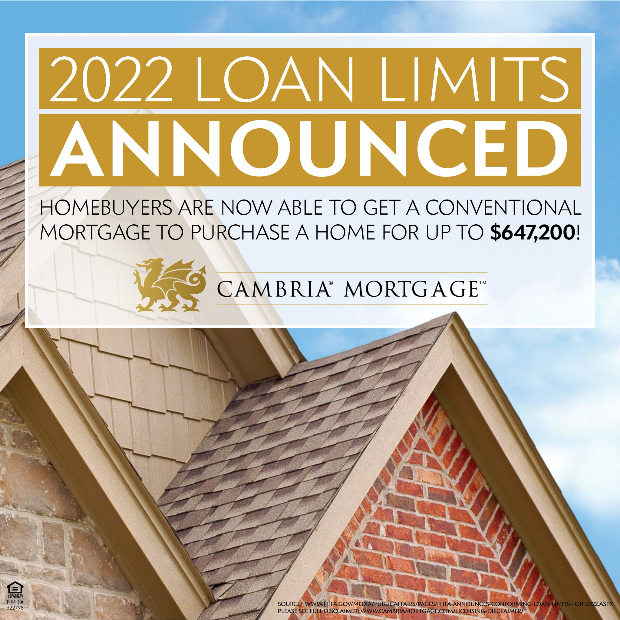The Federal Housing Finance Agency (FHFA) has officially announced the conforming loan limits for 2022. Homebuyers will now be able to get a conventional mortgage to purchase a one-unit home for up to $647,200! This is an increase of $98,950 from $548,250 in 2021, making this the largest-ever annual increase for loans eligible to be purchased by Fannie Mae and Freddie Mac.